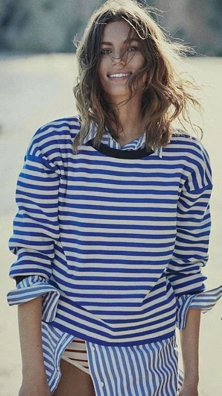 LOVE THE STYLING CHOICES HERE OF 2 OPPOSING LAYERED SHIRTS + SWIM BOTTOMS. IM PERFECT AND VISUALLY INTERESTING.