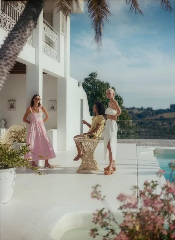 Get shots by a calm body of water like a pool location or resort balcony. here we focus on the juxtaposition of natural elements & strong lines for a more modern feel