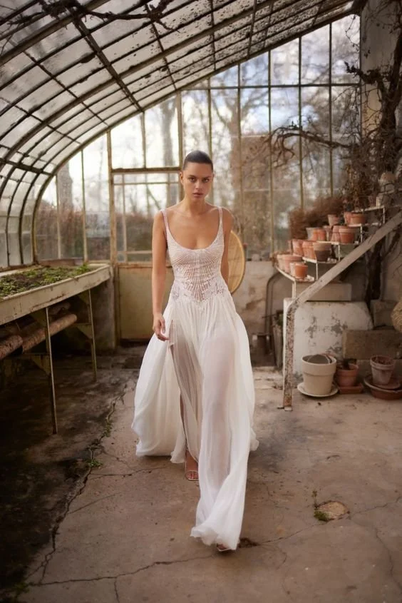 Opt for a corner in a studio or empty room for a crisp contrast to the feminine garments.