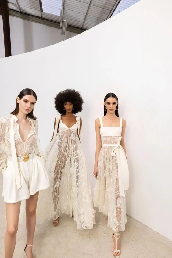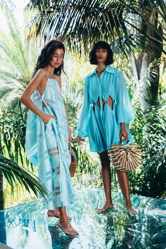 Pair two models in coordinating, luxurious looks. Pose in interesting ways looking away from the camera.