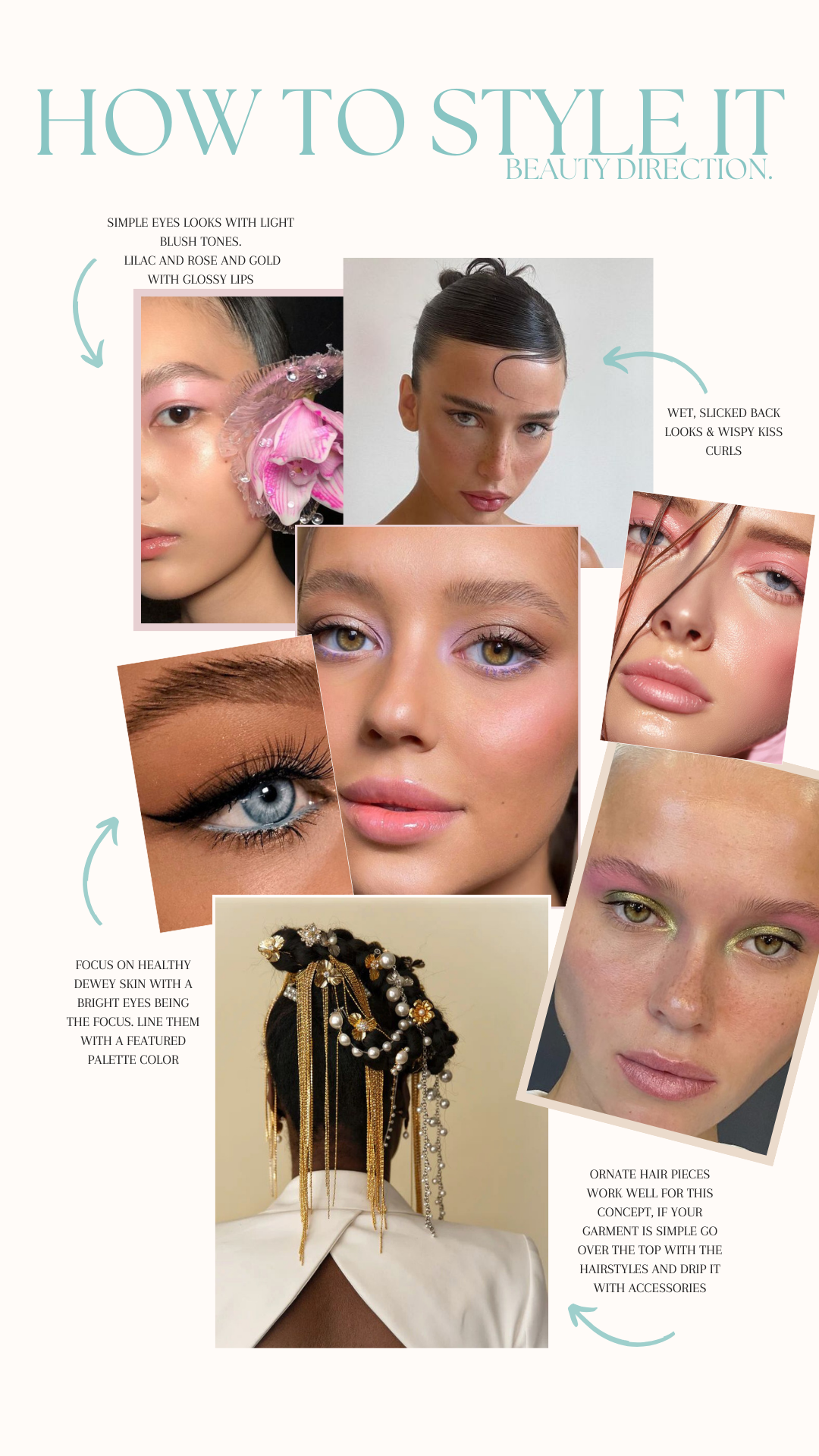go for a soft dream-like approach to the beauty in this campaign. pastel colors and doey eyes.